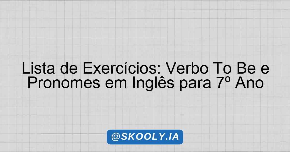 Lista de Exercícios: Verbo To Be e Pronomes em Inglês para 7º Ano
