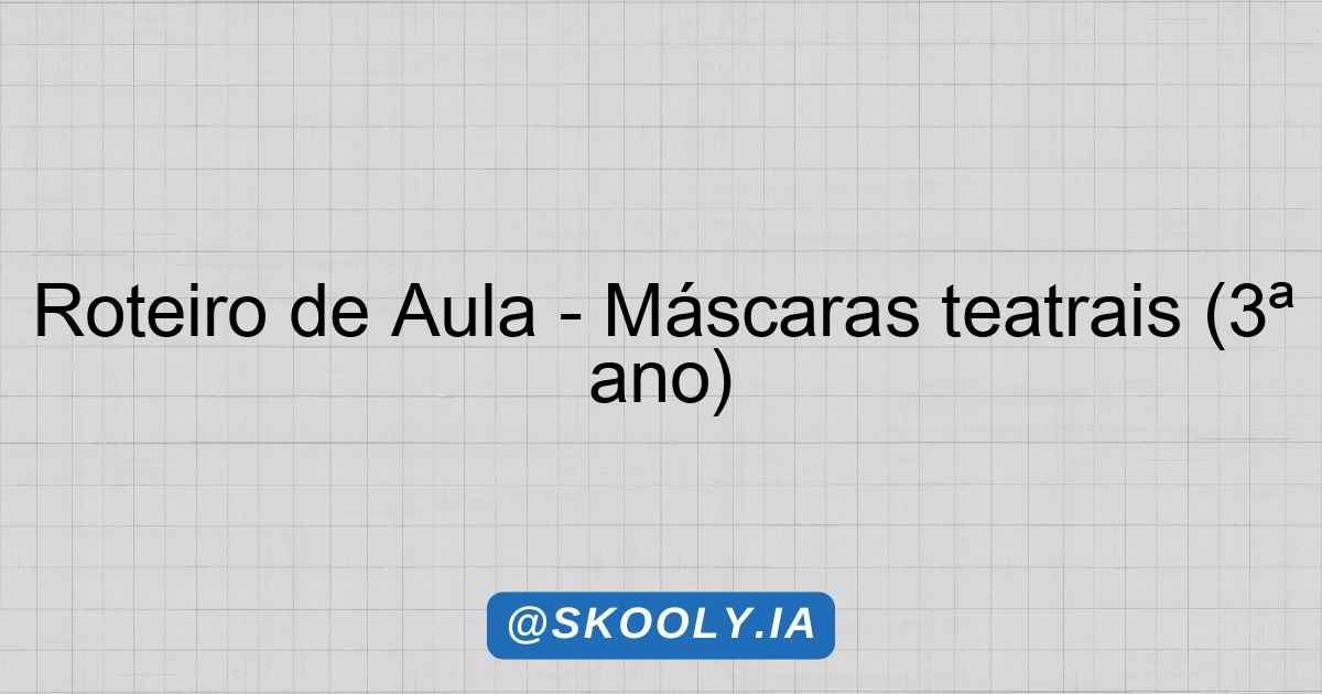 Após a introdução, o professor apresenta o tema da aula: ‘Máscaras teatrais’. Explica que as máscaras têm sido usadas ao longo da história em diversas culturas e desempenham um papel importante na dramatização e na expressão emocional. Pode-se mostrar imagens de diferentes tipos de máscaras e suas origens, como a comédia e a tragédia no teatro grego.