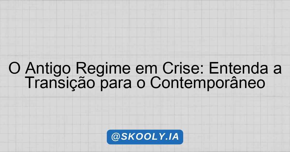 Tema: O mundo contemporâneo: o Antigo Regime em crise