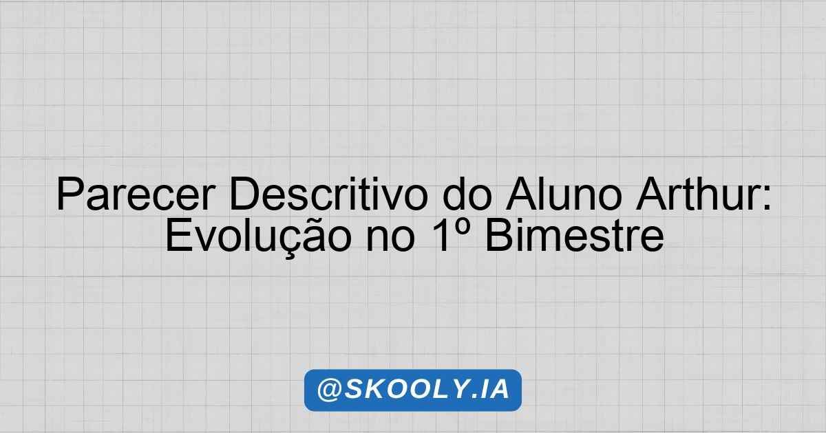 É com grande satisfação que apresento o parecer descritivo do aluno Arthur referente ao 1º bimestre do ano letivo. Neste período, Arthur demonstrou um desenvolvimento esperado nas áreas avaliadas, principalmente em Língua Portuguesa e Matemática, refletindo seu esforço e dedicação.