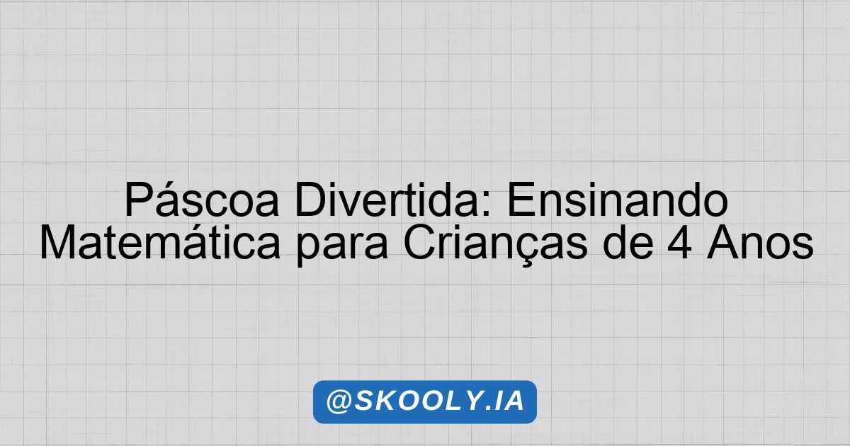 A Páscoa é uma oportunidade mágica para introduzir conceitos matemáticos e de numeração de forma lúdica e divertida para as crianças. Neste plano de aula, as crianças de 4 anos serão apresentadas a habilidades fundamentais relacionadas aos numerais, utilizando atividades que envolvam a celebração da Páscoa. O ambiente festivo não apenas despertará o interesse das crianças, mas também incentivará a exploração e a descoberta através de brincadeiras que estimulam a observação e a comparação de objetos.