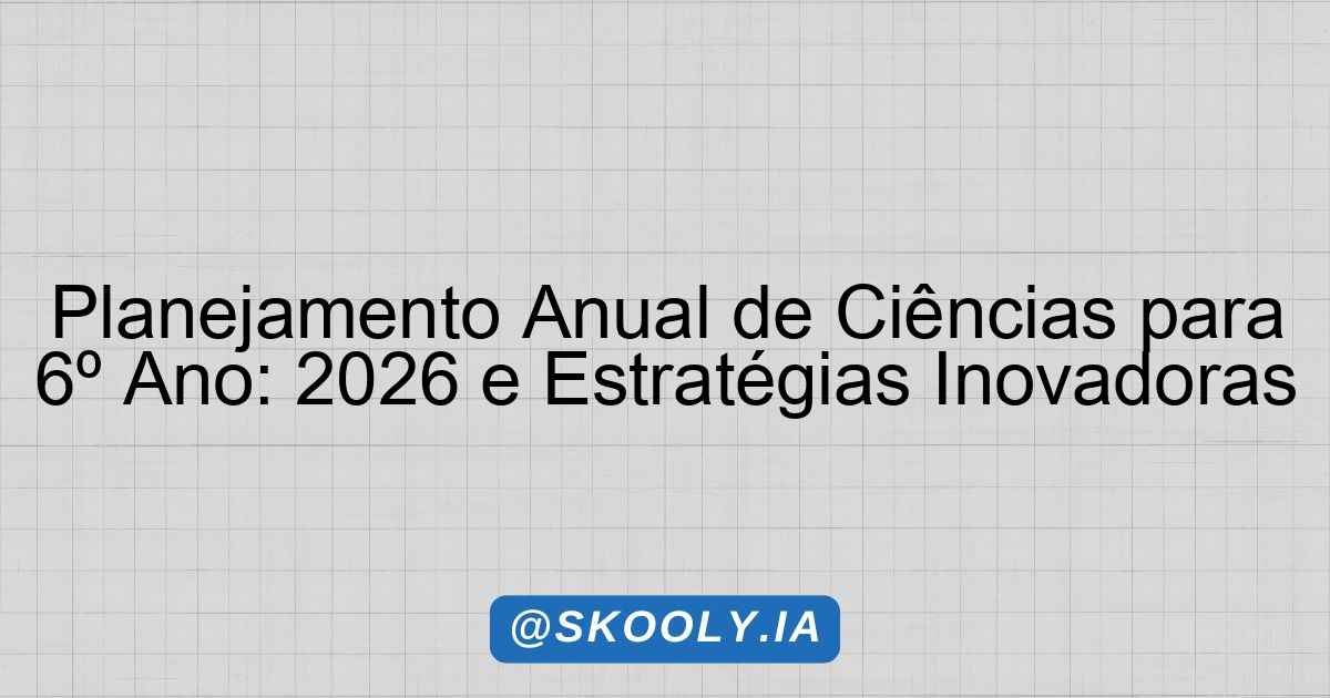 Planejamento Pedagógico – Ciências 6º Ano – Ano Letivo: 2026