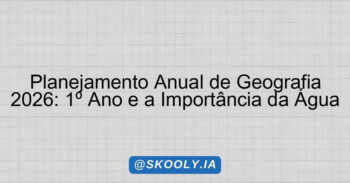 Planejamento Anual de Geografia 2026: 1º Ano e a Importância da Água