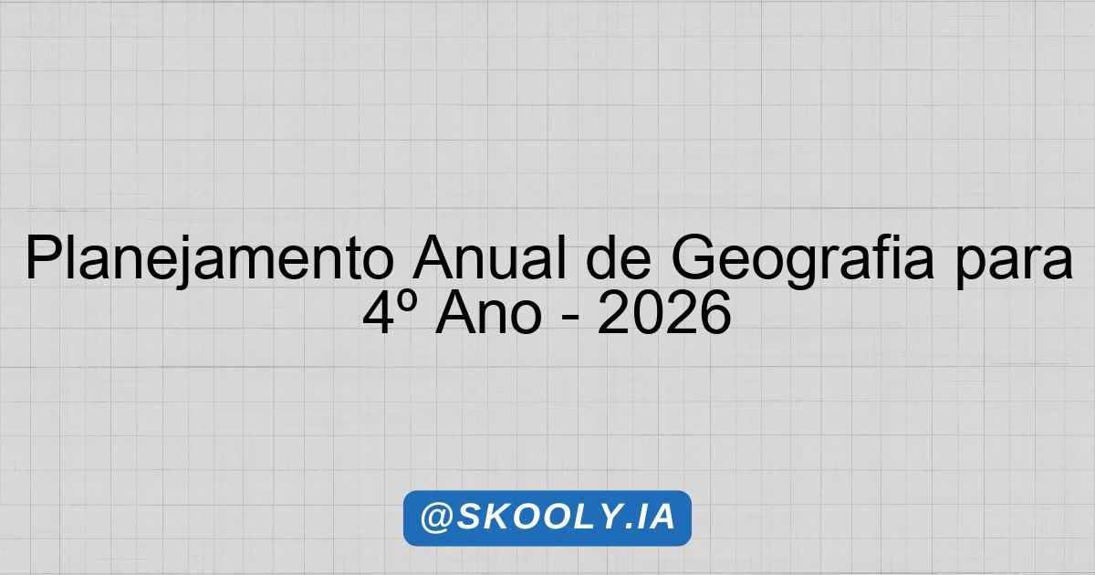 | 1 | Introdução à Geografia: conceito e importância | (EF04GE01) | Aula expositiva dialogada | Discussão em grupo sobre a importância da Geografia nas nossas vidas | Quadro, projetor, slides | Participação na discussão |