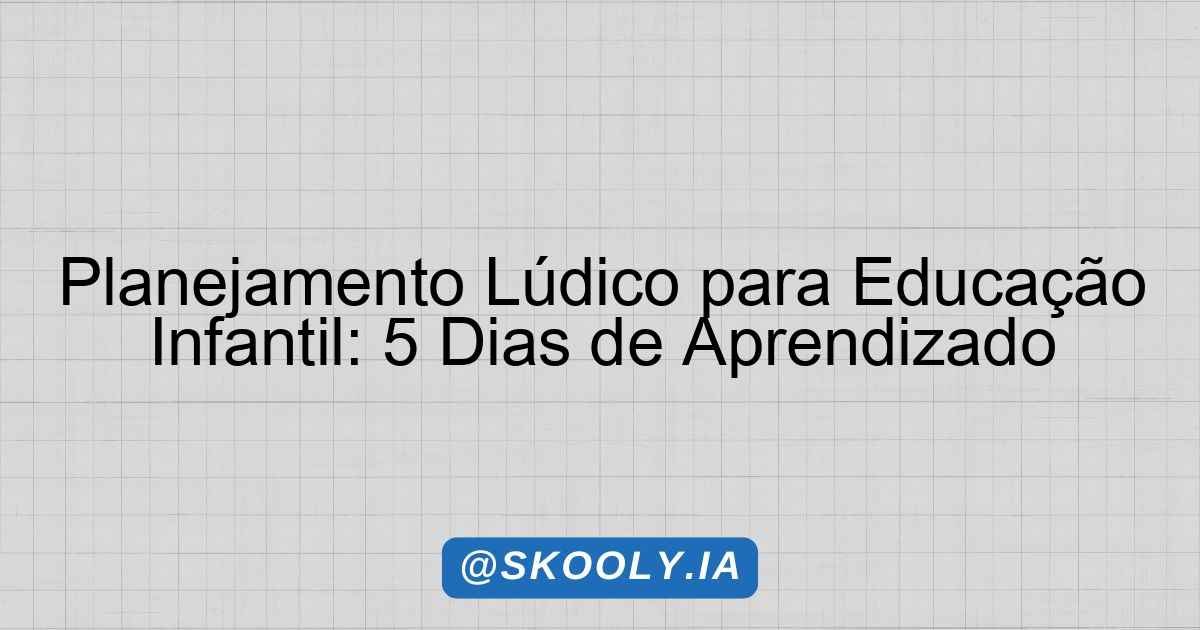Planejamento Lúdico para Educação Infantil: 5 Dias de Aprendizado