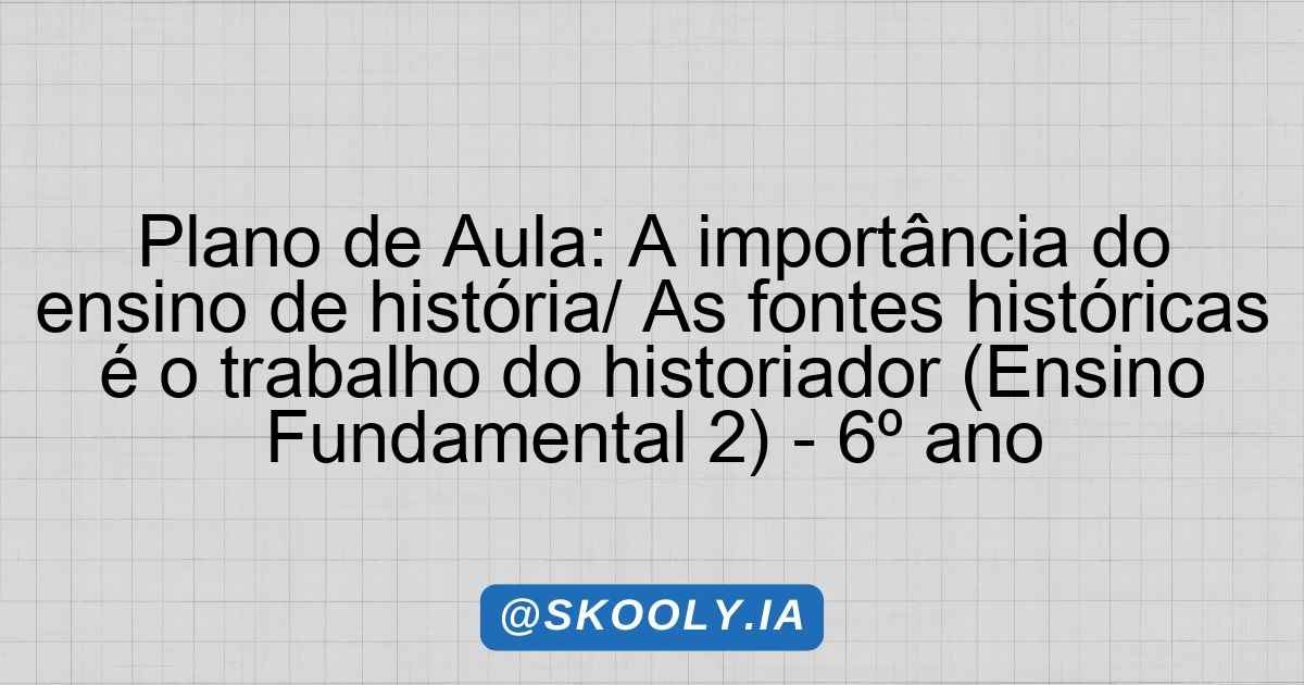 A presente proposta de plano de aula tem como finalidade evidenciar a importância do ensino de história, abordando não apenas a relevância desse campo do conhecimento nas sociedades contemporâneas, mas também enfatizando o papel do historiador na construção da narrativa histórica. A história é essencial para a formação da identidade cultural e social dos indivíduos, além de ser responsável por mostrar a evolução dos aspectos sociais, econômicos e políticos das civilizações. Perceber o valor dessa disciplina é fundamental para que os estudantes compreendam sua inserção no contexto histórico atual.