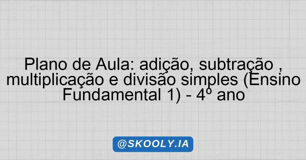 Plano de Aula: adição, subtração , multiplicação e divisão simples (Ensino Fundamental 1) – 4º ano