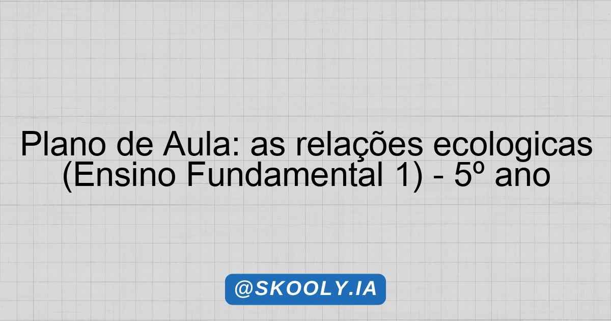 A presente proposta de plano de aula tem como objetivo explorar as relações ecológicas dentro do contexto do Ensino Fundamental, mais especificamente no 5º ano. As relações ecológicas são fundamentais para a compreensão dos ecosistemas e suas interações, além de serem essenciais para o desenvolvimento da consciência ambiental nos alunos. Este plano de aula foi estruturado de maneira a engajar os estudantes em atividades práticas que estimulem a observação, a análise e a reflexão sobre a importância das relações entre os seres vivos e seu ambiente.