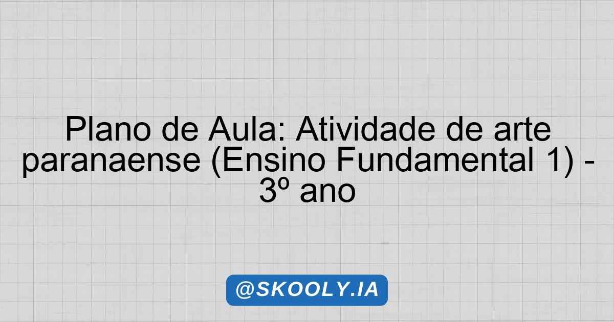 A proposta deste plano de aula busca promover o contato dos estudantes com a arte paranaense, explorando suas características e influências culturais. A atividade envolve um texto explicativo sobre as principais expressões artísticas do Paraná, seguido de uma atividade prática de pintura relacionada ao tema. O objetivo é que os alunos conheçam e apreciem as artes visuais da sua região, estimulando a criatividade e a percepção estética.