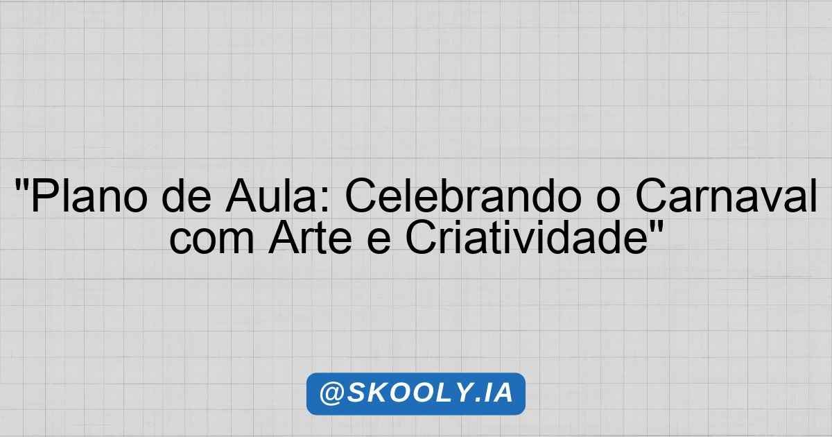 “Plano de Aula: Celebrando o Carnaval com Arte e Criatividade”
