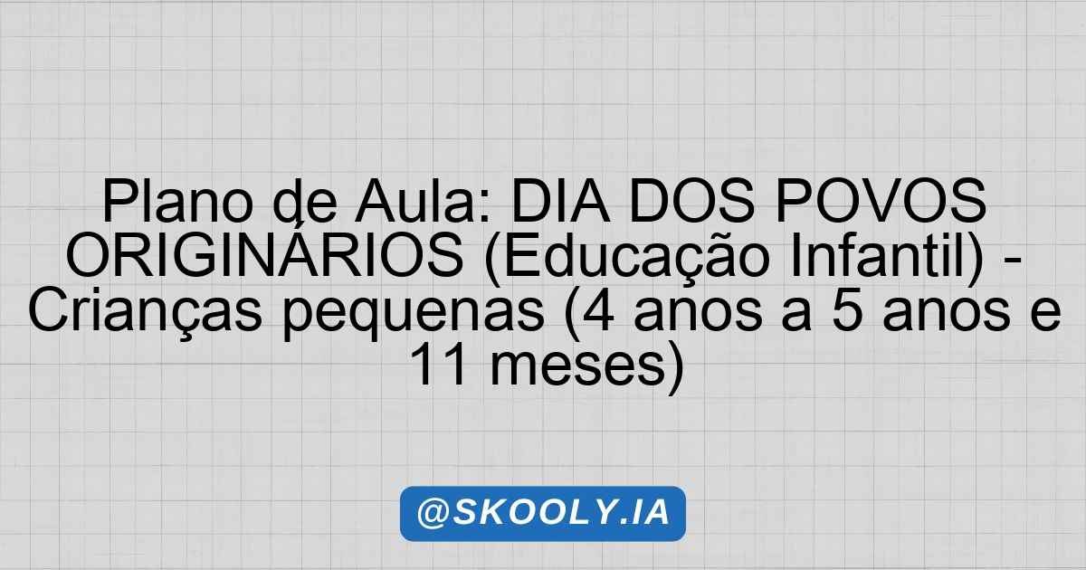 Plano de Aula: Celebrando o Dia dos Povos Originários na Educação Infantil