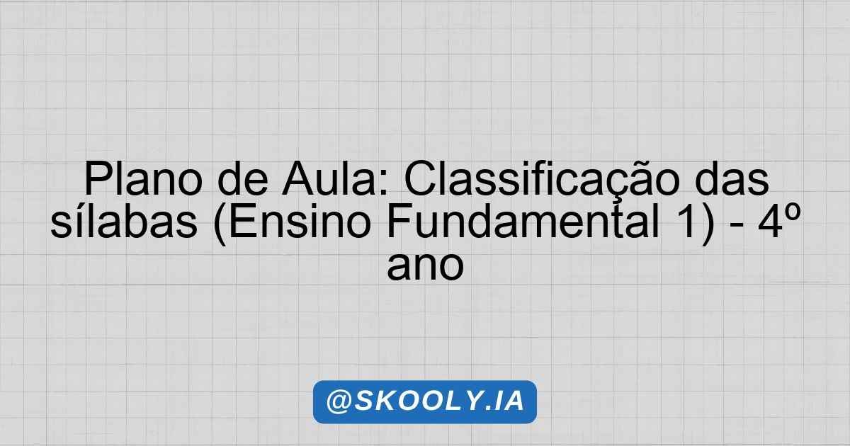 Plano de Aula: Classificação das sílabas (Ensino Fundamental 1) – 4º ano