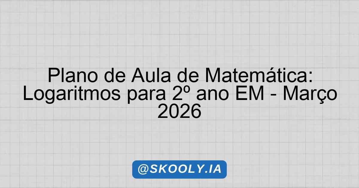 | 01/03 | Introdução aos logaritmos | Aula expositiva e discussão em grupo. |