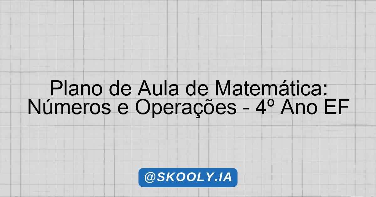 Plano de Aula de Matemática: Números e Operações – 4º Ano EF