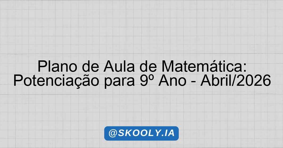 | 04/04 | Introdução à potenciação | Aula expositiva dialogada e discussão em grupo. |