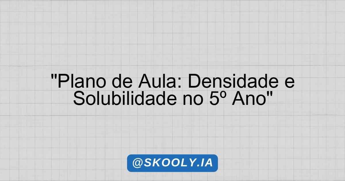 Este plano de aula destina-se a trabalhar os conceitos de densidade e solubilidade com alunos do 5º ano do Ensino Fundamental. Através de atividades práticas e discussões em grupo, os alunos serão incentivados a compreender e identificar esses conceitos em seu cotidiano, promovendo a curiosidade e o conhecimento prático.