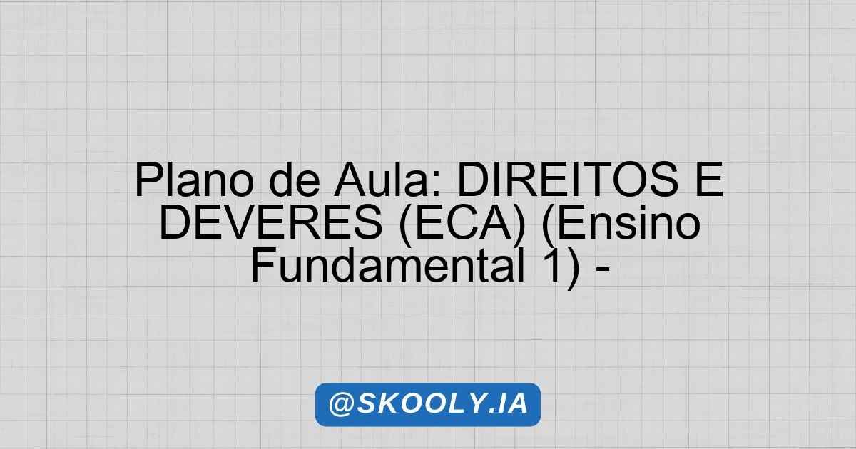 Este plano de aula aborda o tema dos Direitos e Deveres, com ênfase no Estatuto da Criança e do Adolescente (ECA). A proposta educacional é introduzir as crianças ao conhecimento dos seus direitos e deveres, visando à valorização da empatia e do respeito à diversidade. Por meio deste estudo, buscamos proporcionar um ambiente educacional enriquecedor, utilizando metodologias ativas que engajem os alunos de maneira significativa.