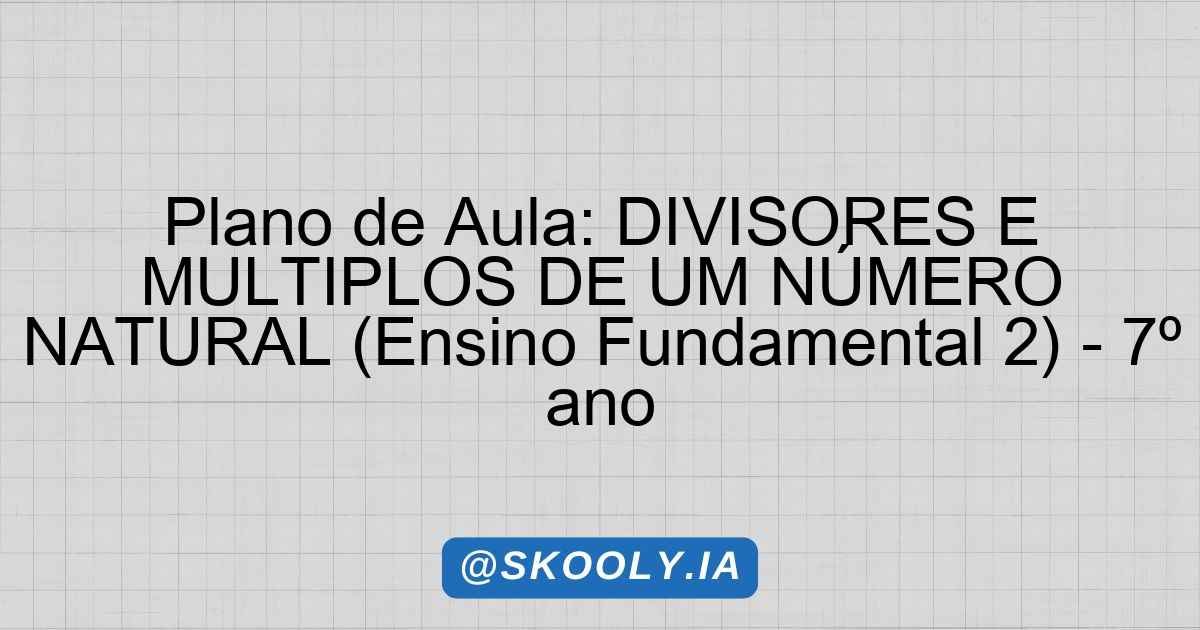 Este plano de aula é voltado para o tema divisores e múltiplos de um número natural, fundamental para a formação matemática dos alunos do 7º ano do Ensino Fundamental. Ao longo da aula, os estudantes terão a oportunidade de explorar as definições, características e aplicações práticas desses conceitos, o que possibilitará uma melhor compreensão das operações matemáticas e sua utilidade no cotidiano. A proposta é que, ao final desta aula, os alunos se sintam motivados a resolver problemas envolvendo divisores e múltiplos, ampliando sua capacidade de raciocínio lógico e a aplicação de conceitos matemáticos em várias situações.
