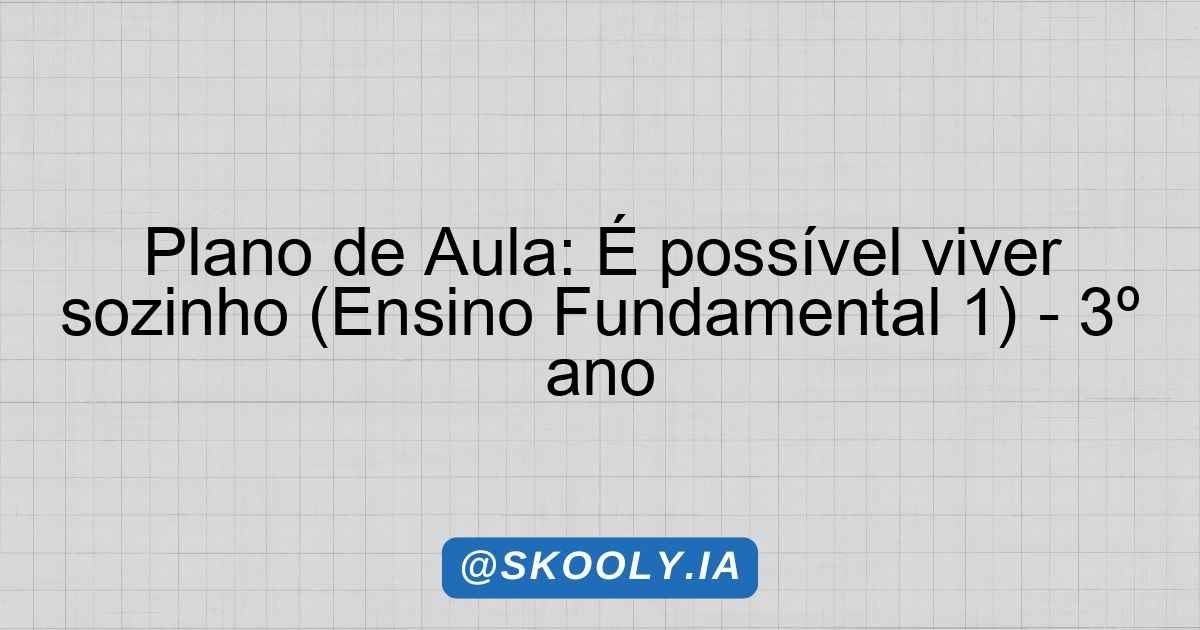 Este plano de aula visa refletir sobre a temática das relações sociais e da vida urbana e rural, abordando a questão de se é possível viver sozinho. O foco central é a compreensão dos diferentes grupos populacionais e suas interações, dentro do contexto da cidade e suas transformações ao longo do tempo. Além disso, pretende-se motivar os alunos a pensar criticamente sobre as implicações de viver de maneira independente, fomentando um ambiente de discussão respeitosa e reflexiva.