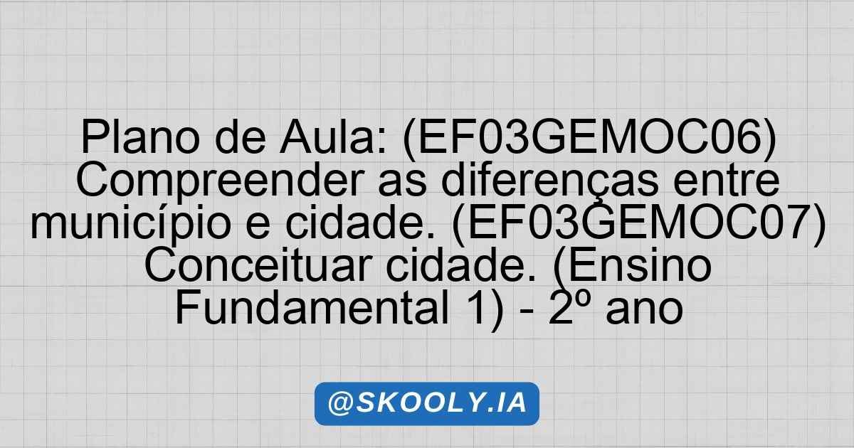 (EF03GEMOC06) Compreender as diferenças entre município e cidade.