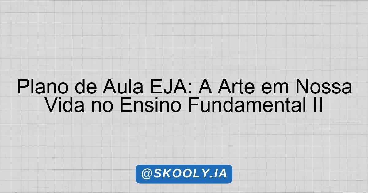 🎓 Etapa: EJA – Ensino Fundamental II (6º ao 9º ano)📚 Disciplina: Arte🔢 Aulas: 4 × 30 minutos📊 Nível: Intermediário🧠 Método: Mista📅 Gerado: 10/04/2026