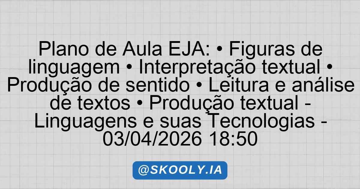 📖 Plano de Aula: • Figuras de linguagem • Interpretação textual • Produção de sentido • Leitura e análise de textos • Produção textual
