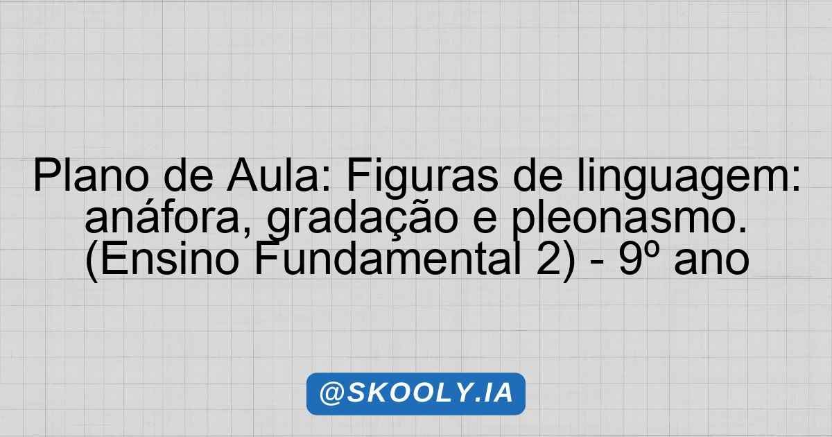 Este plano de aula tem como foco as figuras de linguagem, em especial a anáfora, gradação e pleonasmo. O objetivo é desenvolver nos alunos do 9º ano do Ensino Fundamental 2 uma compreensão aprofundada sobre esses recursos linguísticos, suas definições e aplicações em diferentes contextos textuais. Para isso, a proposta de atividades práticas e discussões em grupo busca não apenas transmitir conteúdo, mas proporcionar uma vivência que torne o aprendizado significativo e engajante.