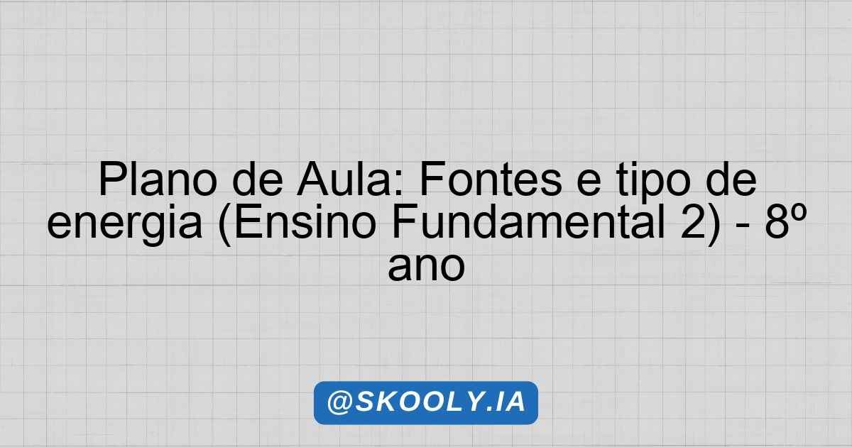 Plano de Aula: Fontes e tipo de energia (Ensino Fundamental 2) – 8º ano