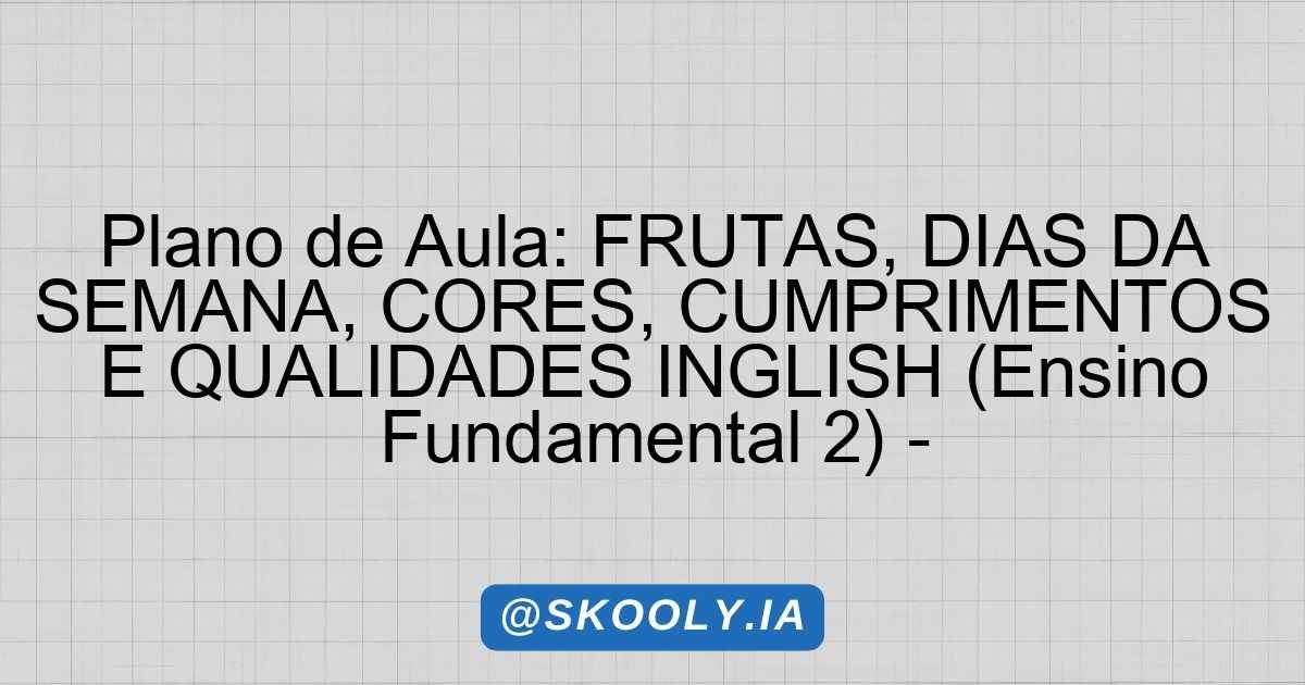 Plano de Aula: FRUTAS, DIAS DA SEMANA, CORES, CUMPRIMENTOS E QUALIDADES INGLISH (Ensino Fundamental 2) –