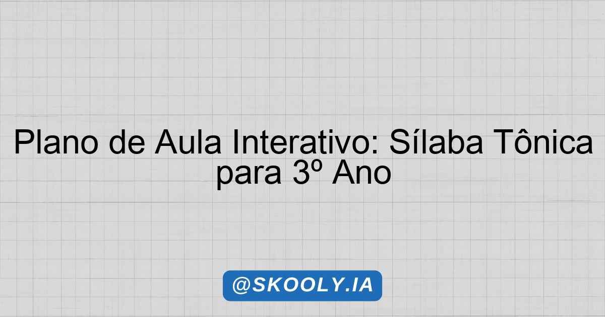 O plano de aula a seguir foi elaborado com o intuito de proporcionar uma experiência significativa e interativa ao aluno, abordando o tema das sílaba tônica. Esta é uma etapa fundamental no aprendizado da Língua Portuguesa, pois a identificação da sílaba tônica é essencial para a correta acentuação e pronúncia das palavras, além de contribuir para o desenvolvimento das habilidades de leitura e escrita. A aula será voltada para alunos do 3º ano do Ensino Fundamental, com uma faixa etária de 8 anos e terá duração de 50 minutos.