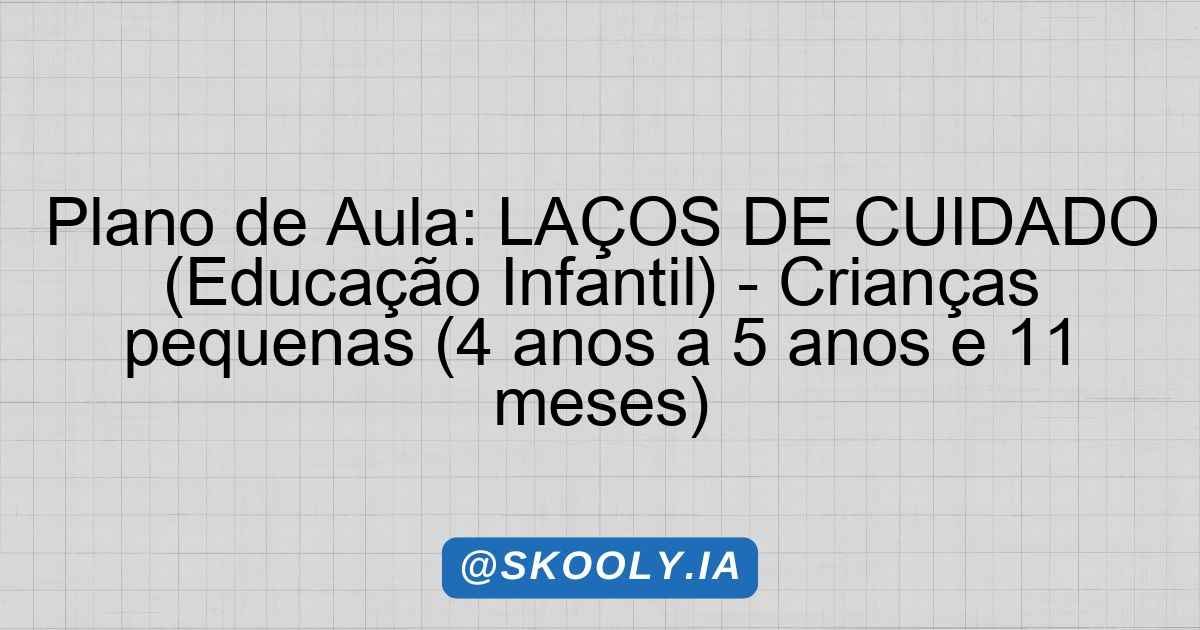 Plano de Aula: LAÇOS DE CUIDADO (Educação Infantil) – Crianças pequenas (4 anos a 5 anos e 11 meses)