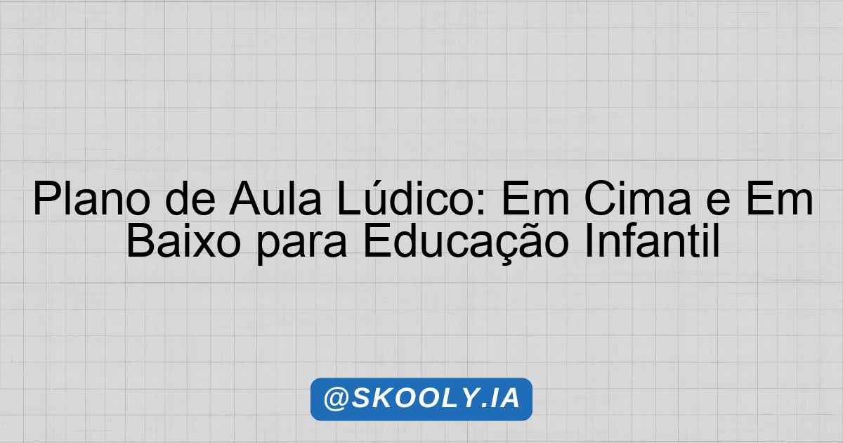 A proposta de plano de aula aqui apresentada busca proporcionar uma experiência lúdica e educativa em um tema central: Em Cima e Em Baixo. Este plano é especialmente voltado para os alunos da Educação Infantil, mais precisamente crianças pequenas de 4 a 5 anos, abordando conceitos importantes sobre espaços, tempos, quantidades, relações e transformações. As atividades foram pensadas para explorar a percepção espacial das crianças e suas interações com o ambiente, estimulando a criatividade e a aprendizagem.