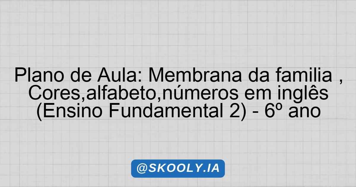 Tema: Membrana da família, cores, alfabeto, números em inglês
