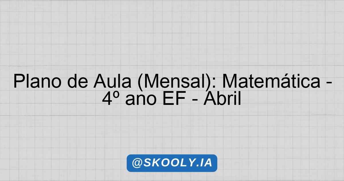 Plano de Aula (Mensal): Matemática – 4º ano EF – Abril