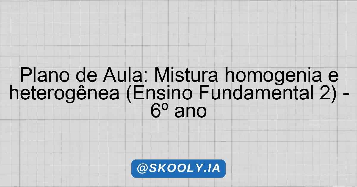 Plano de Aula: Mistura homogenia e heterogênea (Ensino Fundamental 2) – 6º ano