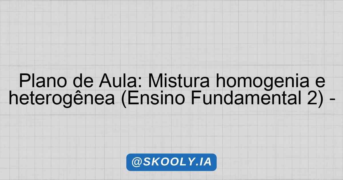 Com este plano de aula, buscamos proporcionar uma experiência rica e diversificada sobre misturas homogêneas e heterogêneas, estimulando a curiosidade e o aprendizado significativo dos alunos.