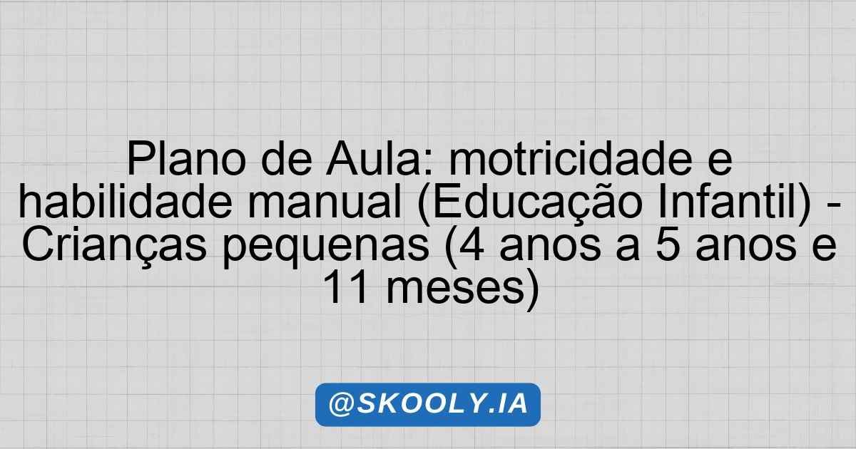 Plano de Aula: motricidade e habilidade manual (Educação Infantil) – Crianças pequenas (4 anos a 5 anos e 11 meses)