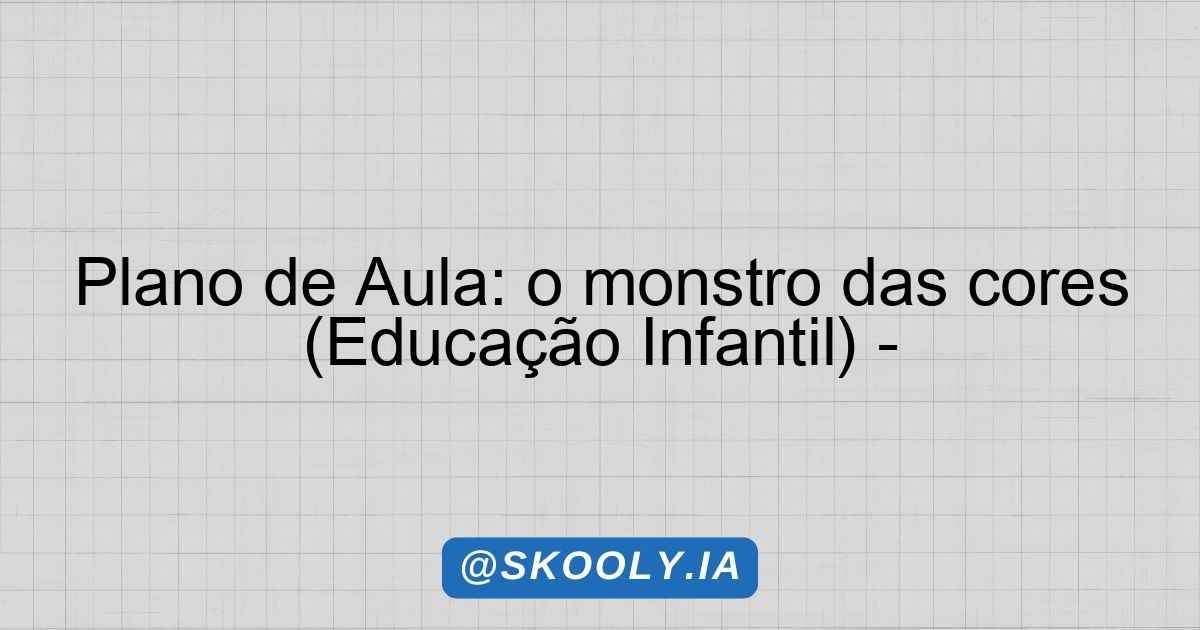 A proposta deste plano de aula é trabalhar com o livro “O Monstro das Cores Vai à Escola”, de Anna Llenas. A atividade está focada em promover o desenvolvimento emocional das crianças de 5 anos, utilizando a história de forma lúdica e interativa. Nesse sentido, o plano busca compreender as emoções através da narrativa e de atividades práticas que estimulam a linguagem, a socialização e a criatividade dos alunos. O foco será a exploração das cores e das emoções, de maneira que as crianças possam criar conexões entre sentimentos e expressões.