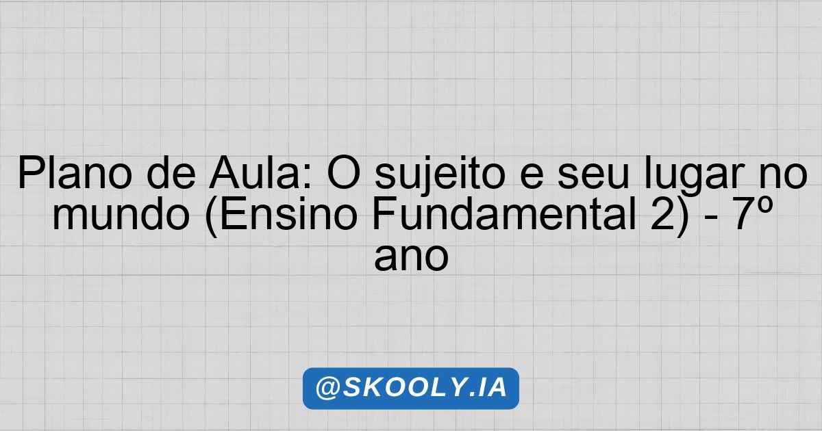 Plano de Aula: O sujeito e seu lugar no mundo (Ensino Fundamental 2) – 7º ano