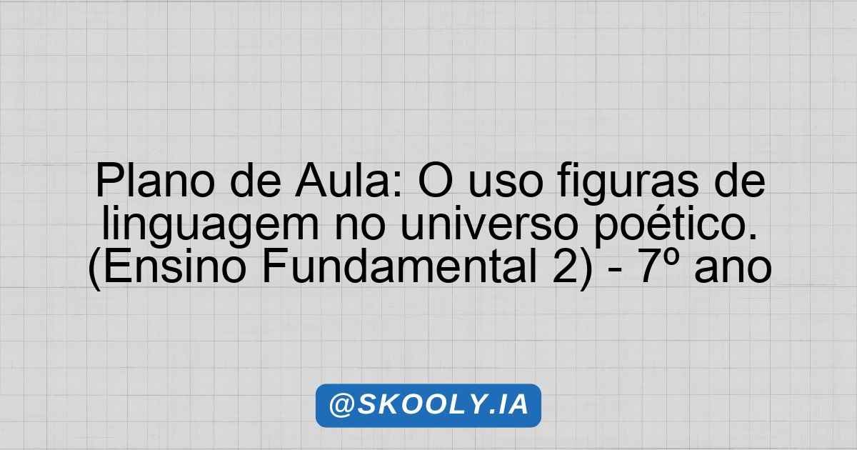 A proposta deste plano de aula visa explorar de maneira efetiva o tema sobre o uso figuras de linguagem no universo poético, fundamental para o entendimento da riqueza e da profundidade da expressão literária. Através deste estudo, os alunos do 7º ano do Ensino Fundamental 2 terão a oportunidade de reconhecer e aplicar essas figuras em suas próprias produções textuais, desenvolvendo uma maior apreciação pela poesia e pela linguagem em si.