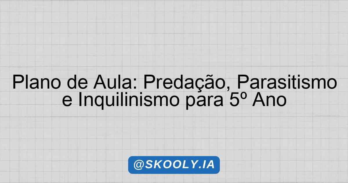 A seguir, apresento um plano de aula detalhado sobre o tema de predação, parasitismo e inquilinismo, voltado para o 5º ano do Ensino Fundamental. O foco é a compreensão das relações ecológicas e suas implicações no ambiente. As atividades propostas abordarão os conceitos de maneira dinâmica e envolvente, promovendo a aprendizagem significativa dos alunos.
