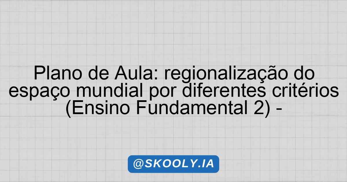 A proposta deste plano de aula é explorar a regionalização do espaço mundial por diferentes critérios, permitindo que os alunos compreendam as maneira distintas de organizar e interpretar a realidade geográfica. A regionalização é um conceito crucial para o entendimento dos fenômenos sociais, econômicos e políticos que influenciam o mundo. Este plano vai proporcionar um espaço para a análise crítica e reflexiva, estimulando a curiosidade dos alunos e incentivando o desenvolvimento de suas habilidades geográficas.