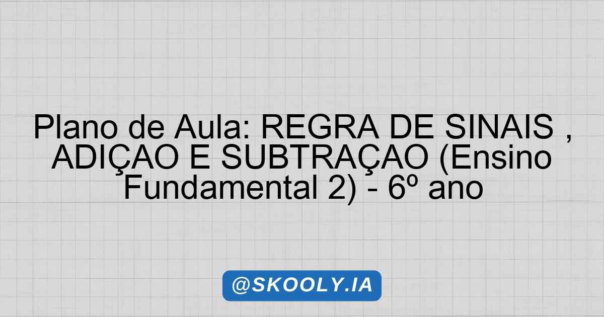 Plano de Aula: REGRA DE SINAIS , ADIÇAO E SUBTRAÇAO (Ensino Fundamental 2) – 6º ano