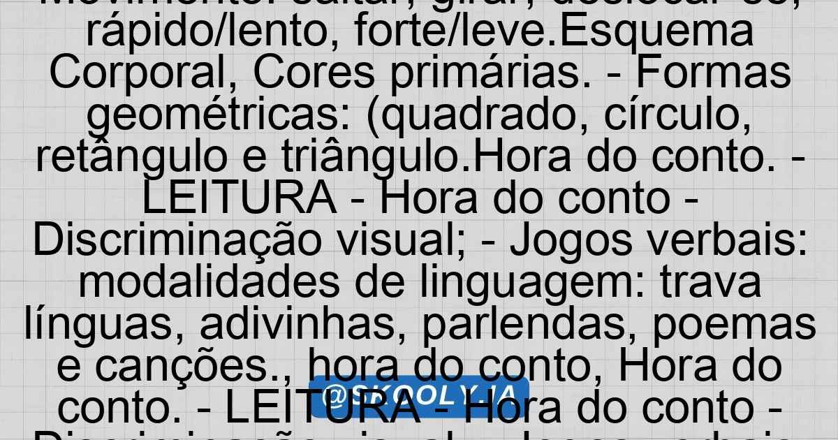 – Conhecer as cores primárias e formas geométricas (quadrado, círculo, retângulo e triângulo).