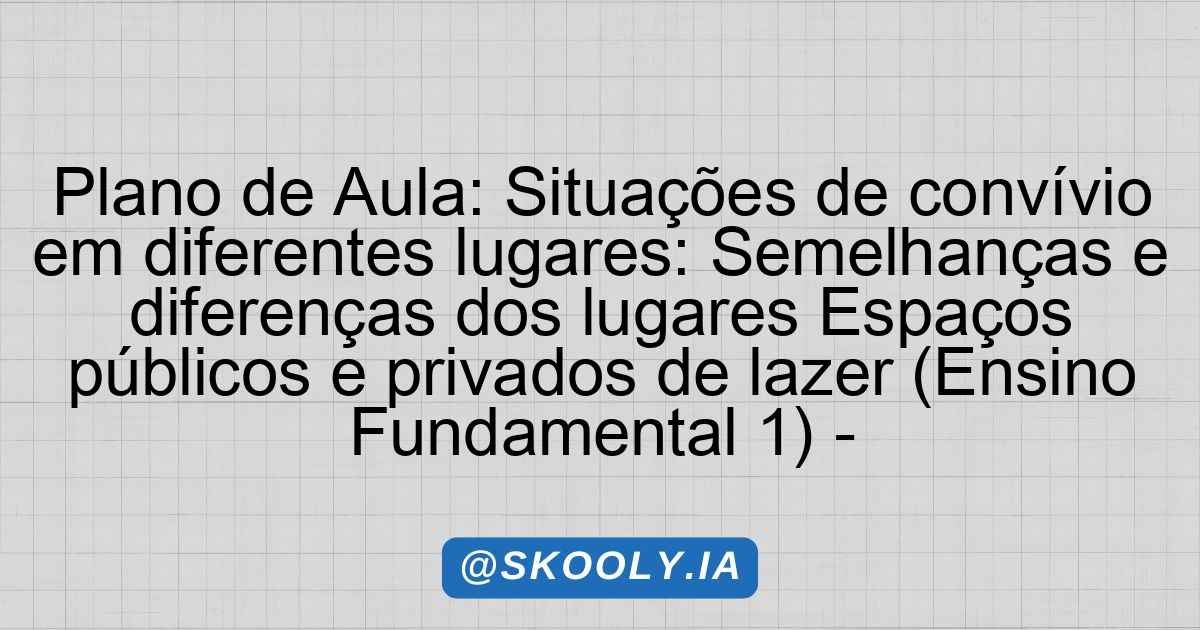 O presente plano de aula destina-se ao ensino fundamental 1, abordando situações de convívio em diferentes lugares, com ênfase nas semelhanças e diferenças entre espaços públicos e privados de lazer. O objetivo é proporcionar aos alunos a oportunidade de explorar e compreender a dinâmica de seus grupos de convívio, bem como discutir coletivamente as regras que regem a convivência em diferentes ambientes. A atividade proposta envolve o uso de metodologias que promovem a participação ativa dos alunos, estimulando a reflexão crítica e a construção de um conhecimento contextualizado.