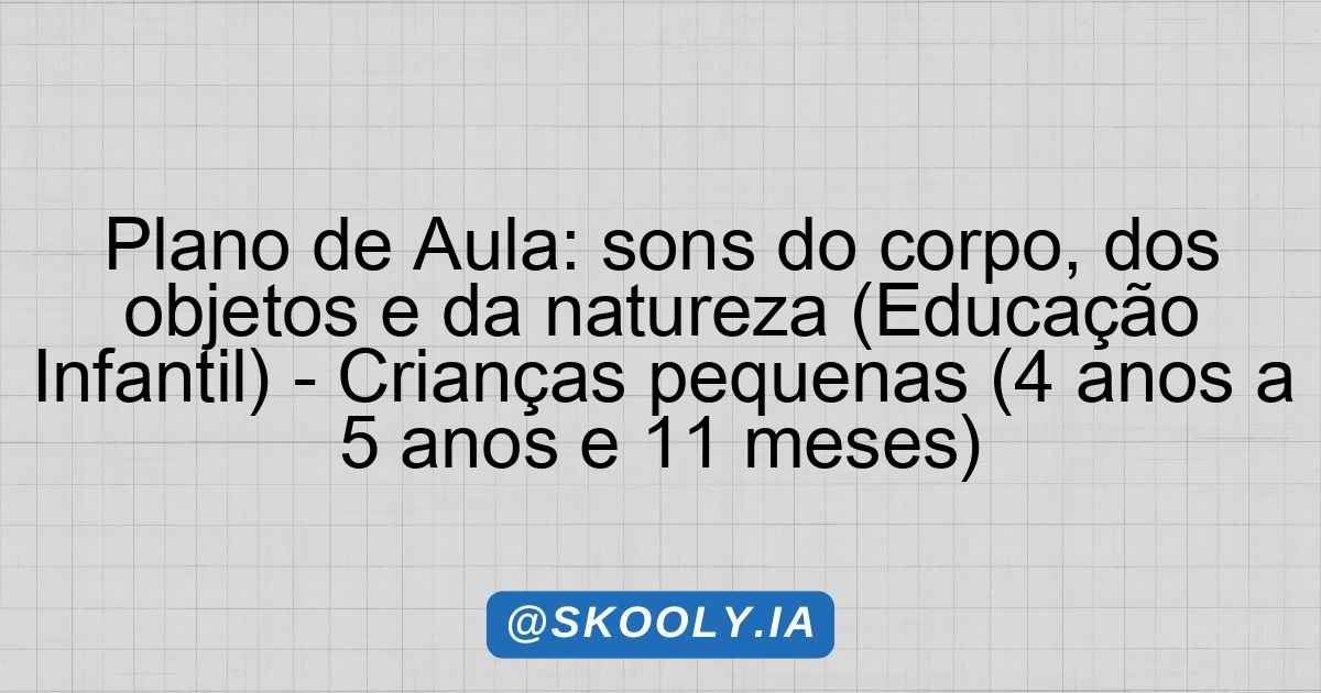 A presente aula aborda de forma lúdica e interativa o tema dos sons do corpo, dos objetos e da natureza, proporcionando uma experiência enriquecedora para as crianças pequenas. Além de estimular a percepção sonora, a atividade promove o desenvolvimento da criatividade e da expressão corporal, fundamentais nesta faixa etária. A aula é planejada para ser dinâmica, permitindo que as crianças explorem os sons de maneira prática e divertida.
