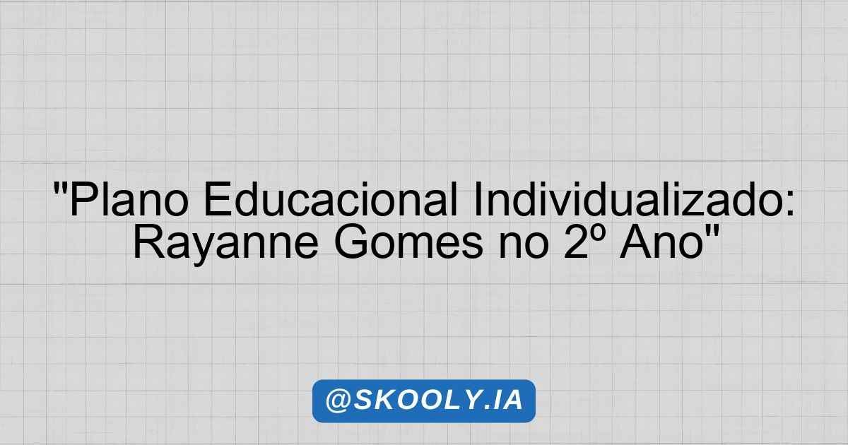 PEI – Plano Educacional Individualizado – RAYANNE EMANUELLE GOMES DOS SANTOS