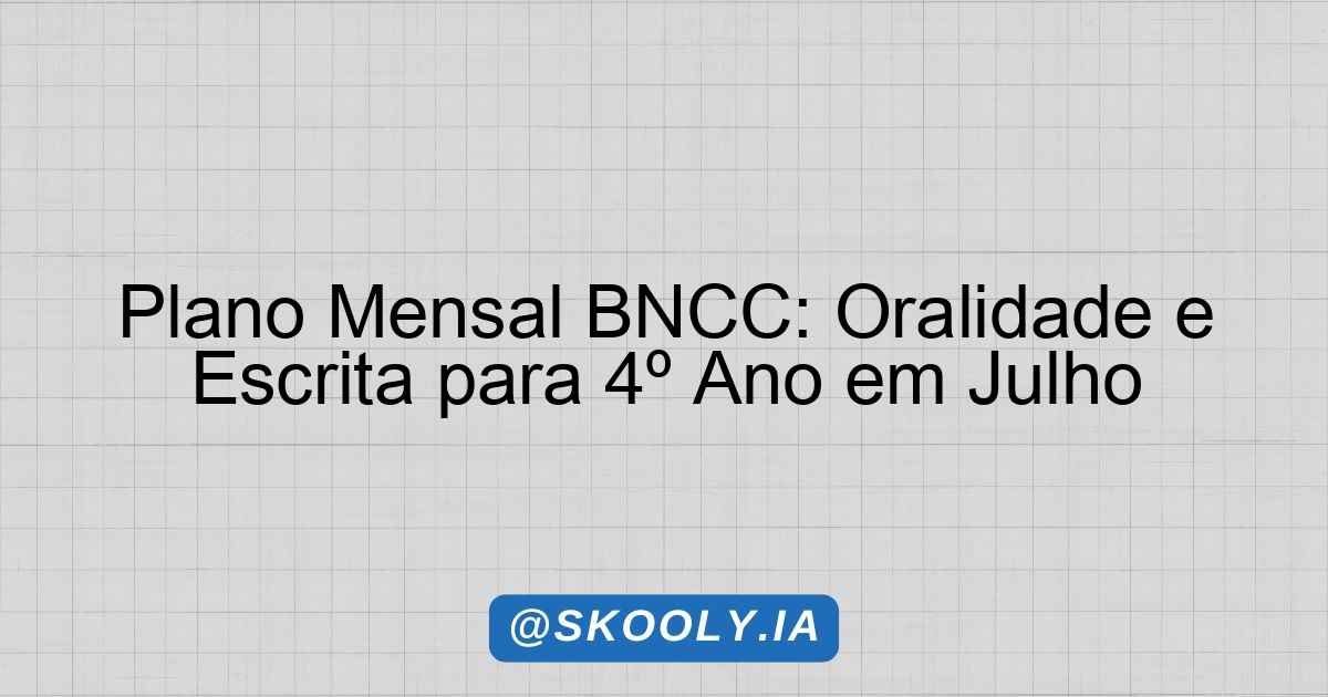 Plano Mensal BNCC: Oralidade e Escrita para 4º Ano em Julho