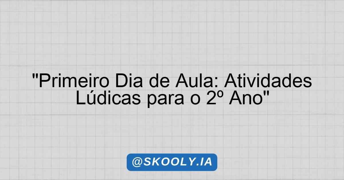 “Primeiro Dia de Aula: Atividades Lúdicas para o 2º Ano”