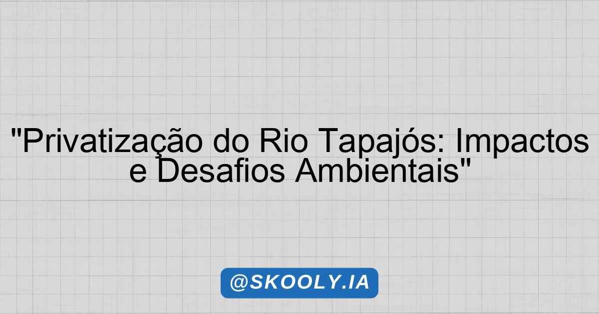 Promover a compreensão dos alunos sobre a privatização do Rio Tapajós, suas implicações para o agronegócio e os impactos sociais e ambientais relacionados.